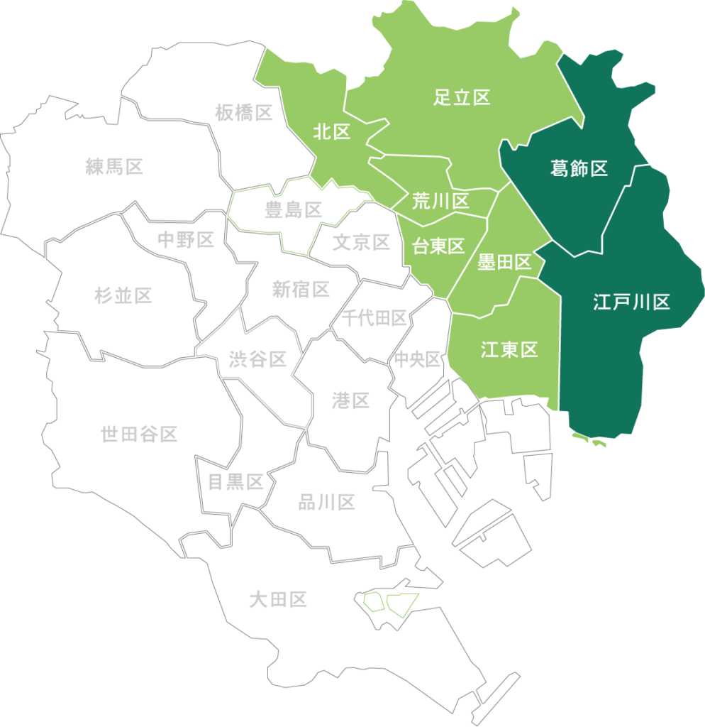 | 一部訪問可能 | 江戸川区・江東区・荒川区・北区・墨田区・埼玉県/千葉県の一部地域 |